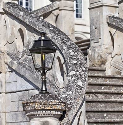 Die Avenue 3 Nr. 05 ist eine klassische Außen-Gartenleuchte mit vierseitiger Laterne und mittlerer Bauhöhe.