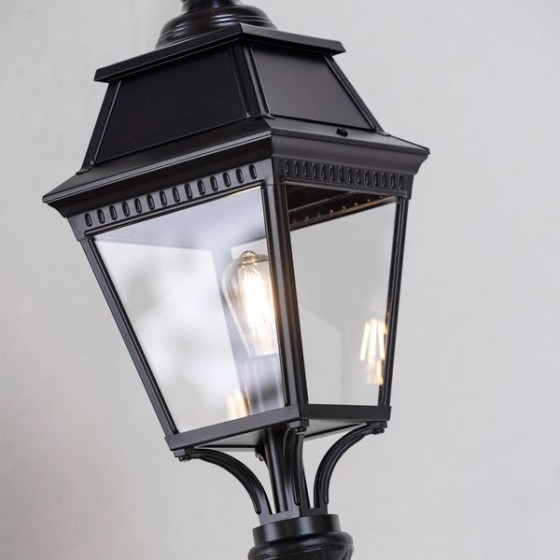 Die Avenue 3 Nr. 07 ist eine klassische Außen-Mastleuchte mit gerader Bauform und vierseitiger Laterne.