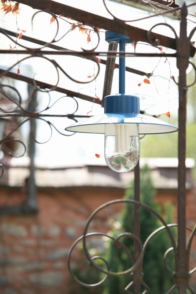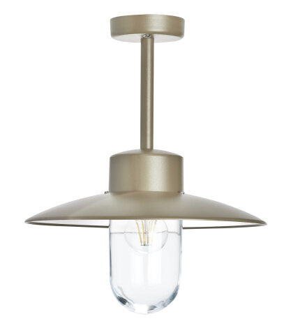 Durch den großen Schirm wirkt sie stärker als flache Deckenleuchten, ohne aufdringlich zu sein. Sie passt besonders gut zu überdachten Bereichen mit klarer Struktur.
