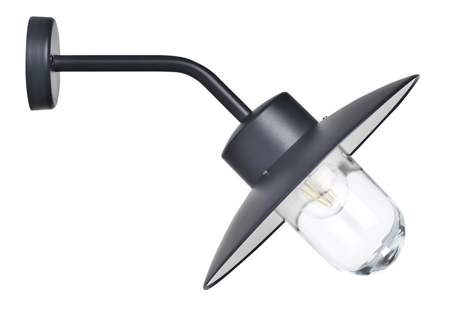 Durch den nach vorne gesetzten Arm wirkt die Leuchte präsenter als eine flach montierte Variante.