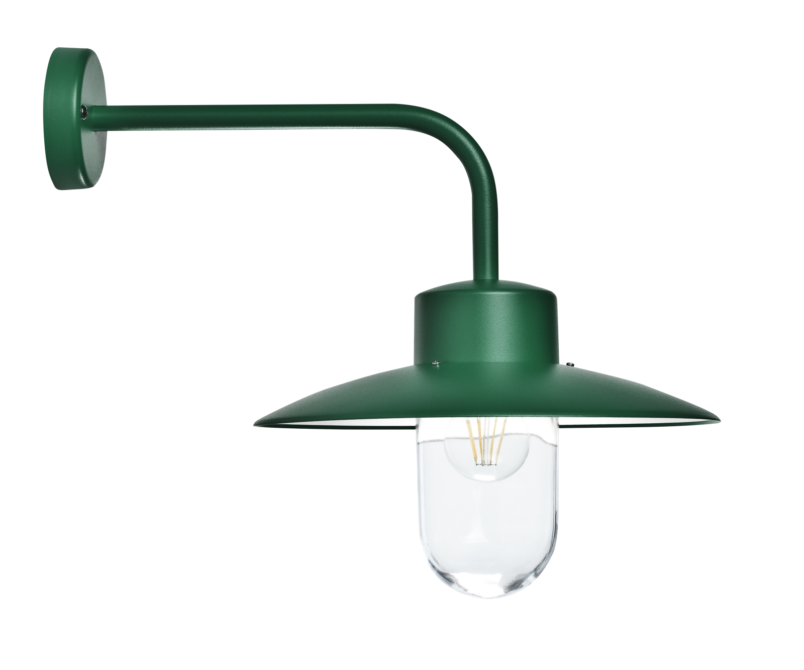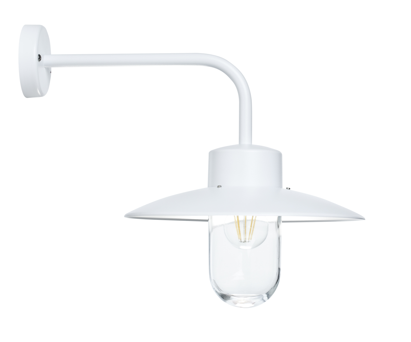 Durch den ausgeprägten Wandarm wirkt die Leuchte größer und präsenter als kompaktere Modelle.