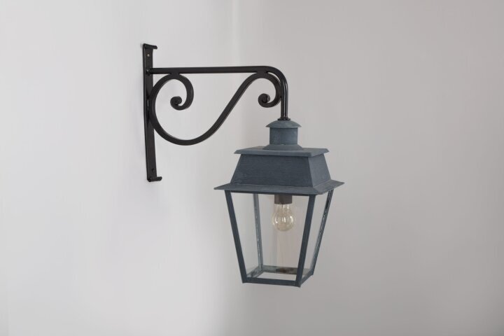 Hergestellt aus massivem Messing oder gealtertem Zink, ist diese Wandlampe besonders wetterbeständig und langlebig. Der schmiedeeiserne Wandarm in 40 cm Länge sorgt für eine optimale Lichtpositionierung und unterstreicht die nostalgische Ästhetik. Die klassische E27-Fassung ermöglicht den Einsatz von modernen oder Retro-Leuchtmitteln.