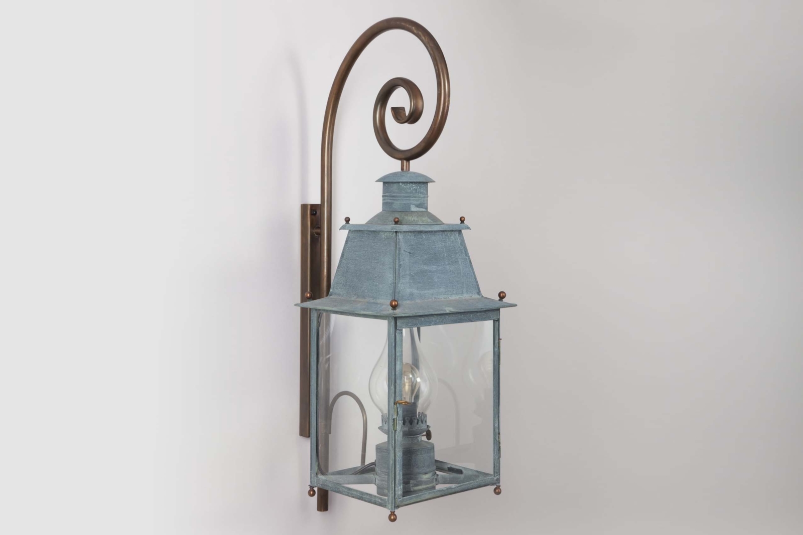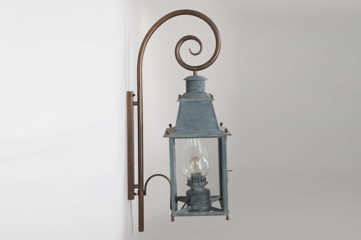 Mit ihrem robusten Gehäuse aus massivem Zink oder Messing und der edlen Patina passt diese Wandleuchte perfekt zu Landhäusern, Fachwerkhäusern oder klassischen Stadtresidenzen. Die verstärkte Version des Bischofsstab-Wandarms sorgt für eine stabile & sichere Montage an jeder Fassade.