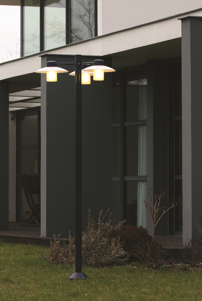 Ja. Durch ihre drei Lichtköpfe eignet sich diese Mastleuchte besonders für größere Wege, Einfahrten und repräsentative Außenanlagen.