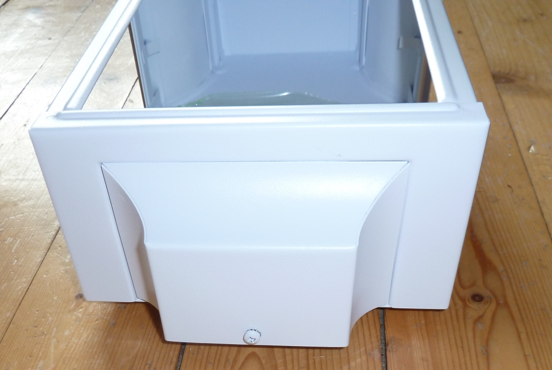 Mit einer Höhe von 366 mm, einer Breite von 222 mm und einer Tiefe von 132 mm eignet sie sich besonders für Eingangsbereiche, kleinere Fassadenflächen und geschützte Außenbereiche.