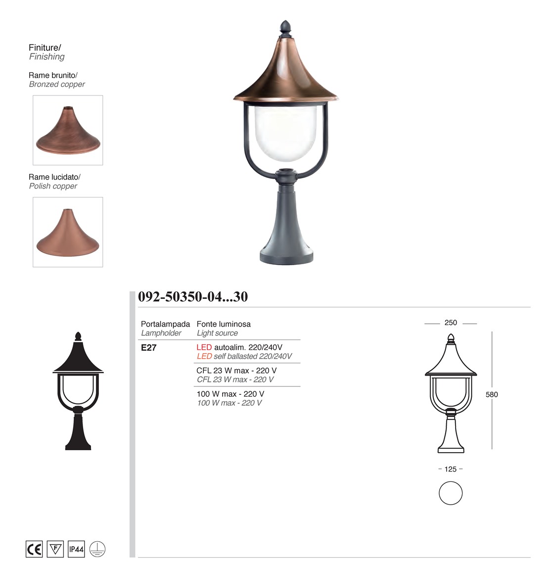 mediterrane Sockelleuchte Columba Nr. 50350-04 von Framon Tradizionale, Manufaktur für Außenbeleuchtung aus Italien.