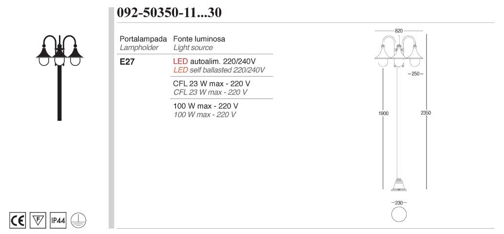• Komponenten: Aluminiumguss EN AB 46100 lackiert mit Polyester-Pulver schützt vor UV-Strahlung und ist korrosionsbeständig