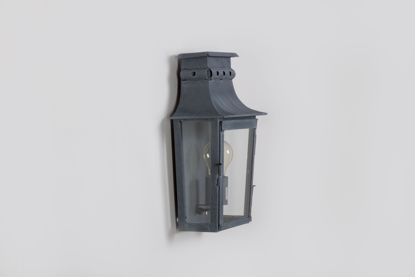 Diese mittelgroße Ausführung (Größe M) eignet sich hervorragend für geschützte Eingangsbereiche, Hausfassaden, Flure, Gartenmauern oder überdachte Terrassen. Das gealterte Zink-Finish sorgt für eine dezente, edle Patina und unterstreicht den historischen Charakter.