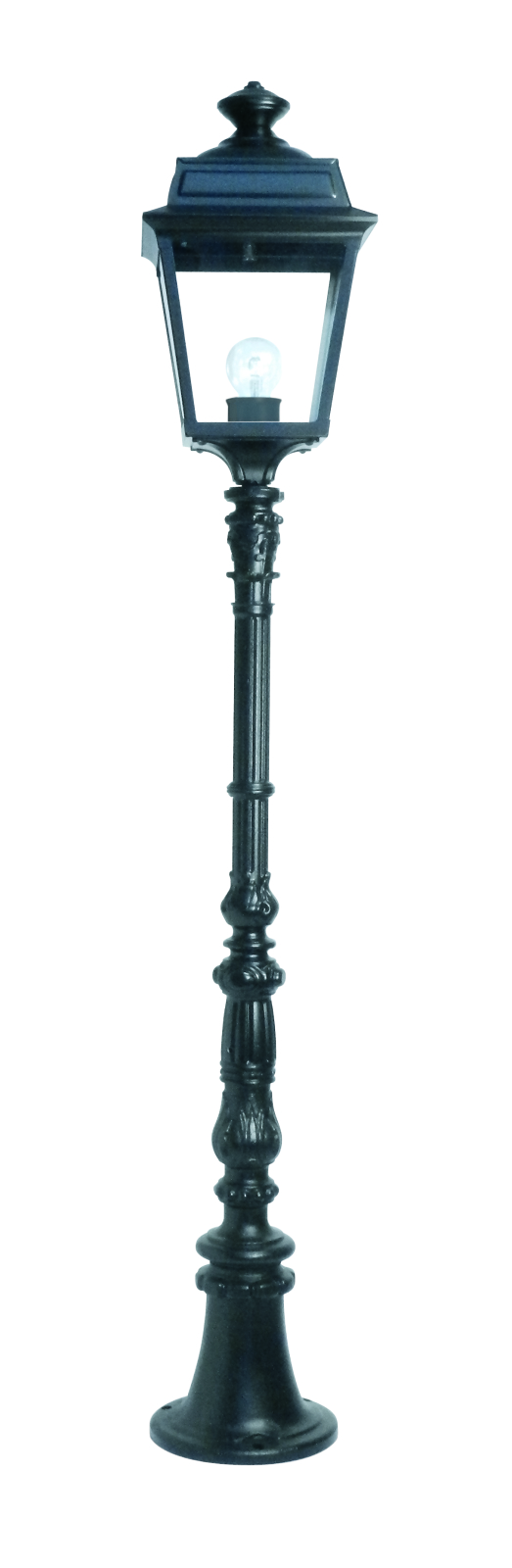 Die vierseitige Laterne sorgt für eine gleichmäßige Lichtverteilung und eine harmonische Gesamtwirkung.