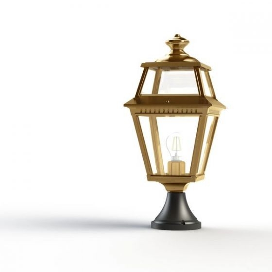 Die vierseitige Laterne sorgt für eine gleichmäßige Lichtverteilung und eine ruhige Gesamtwirkung.