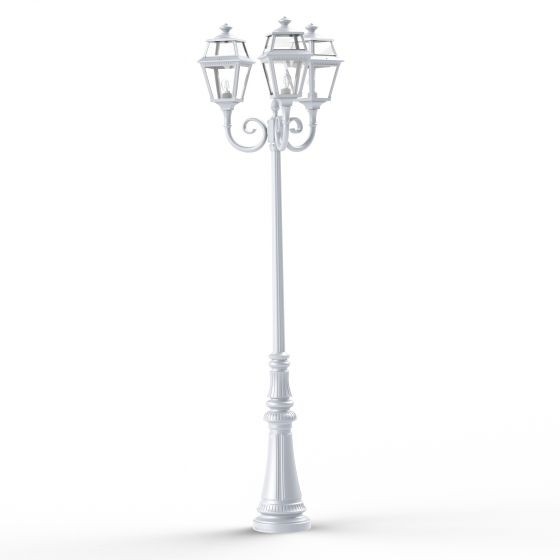 Die drei Laternenköpfe mit jeweils 454 mm Höhe und 240 mm Breite sorgen für eine gleichmäßige Rundumbeleuchtung und eine breite Lichtverteilung.