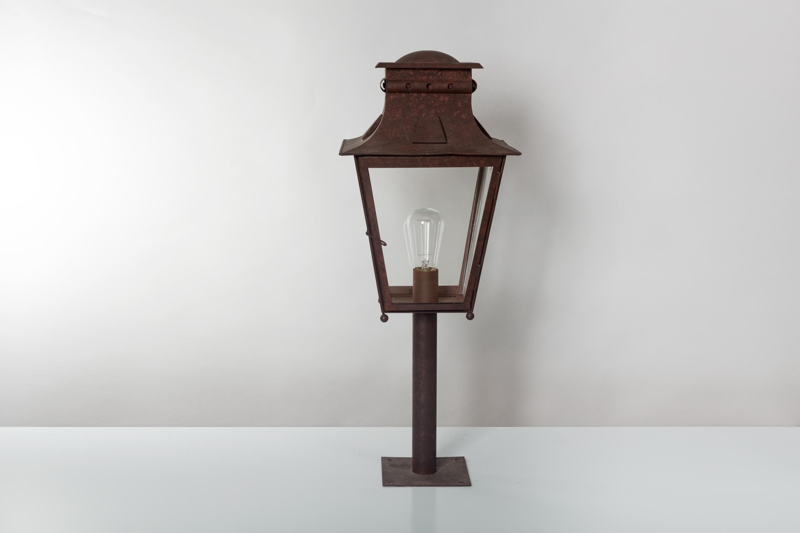 Erhältlich in verschiedenen Größen und Sockelformen – rund, sechseckig oder quadratisch – können Sie den Mast perfekt auf Ihre Laterne abstimmen. Beachten Sie, dass größere Laternen höhere Säulen benötigen, um ein stimmiges Gesamtbild zu gewährleisten. Das abgebildete Modell in Edelrost-Anstrich verleiht Ihrem Außenbereich eine rustikale, charaktervolle Ästhetik, die sich mit der Zeit weiterentwickeln und veredeln wird.
