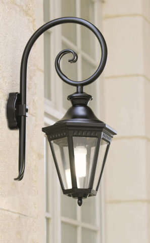 Die Victoria Nr. 03 ist eine klassische Außenwandleuchte mit sechseckiger Laterne und gebogenem Wandarm.