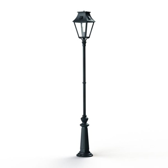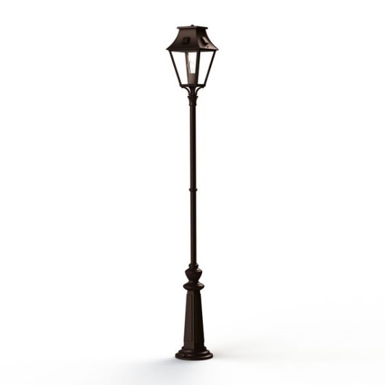 Die Vieille France Nr. 3 ist eine klassische Außen-Mastleuchte mit geradem Standrohr und vierseitiger Laterne.