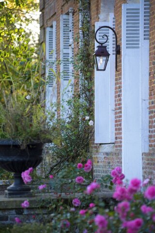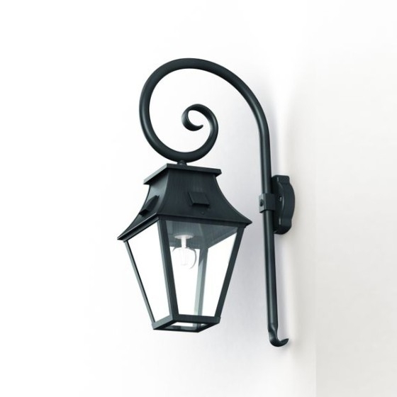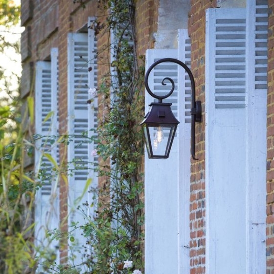 Die Vieille France Nr. 1 ist eine klassische Außenwandleuchte mit geschwungenem Bischofsstab und vierseitiger Laterne.