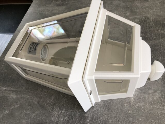 Die Oberflächen der Außenlampe sind mit Polyesterpulver gegen Korrosion versiegelt. Alle Schrauben bestehen aus A2 rostfreier Stahl.